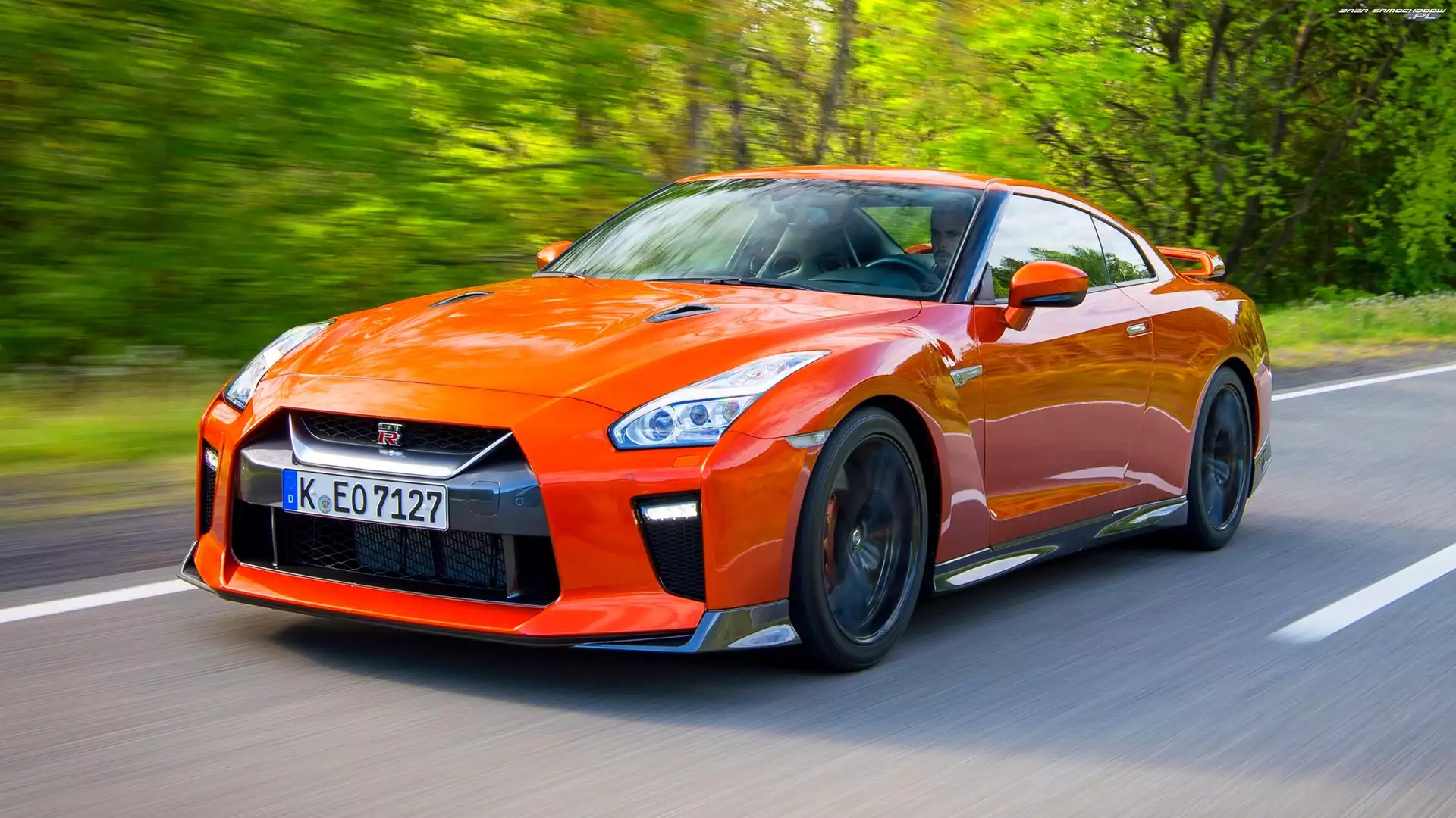 Nissan GT-R, Droga, Czerwony, Las- Zdjęcia samochodów